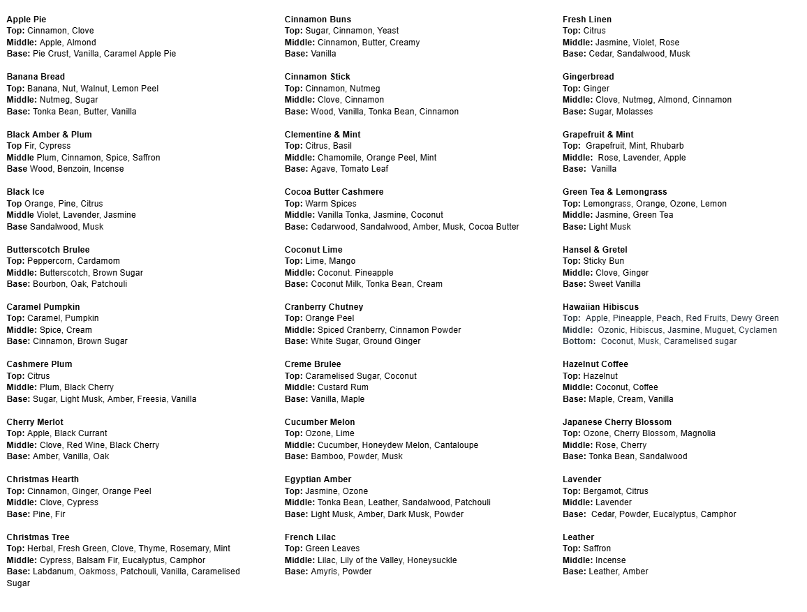 Our complete list of updated scent notes can be found here: https://rosecreekcandleco.com/blogs/news/scent-notes-for-our-fragrances