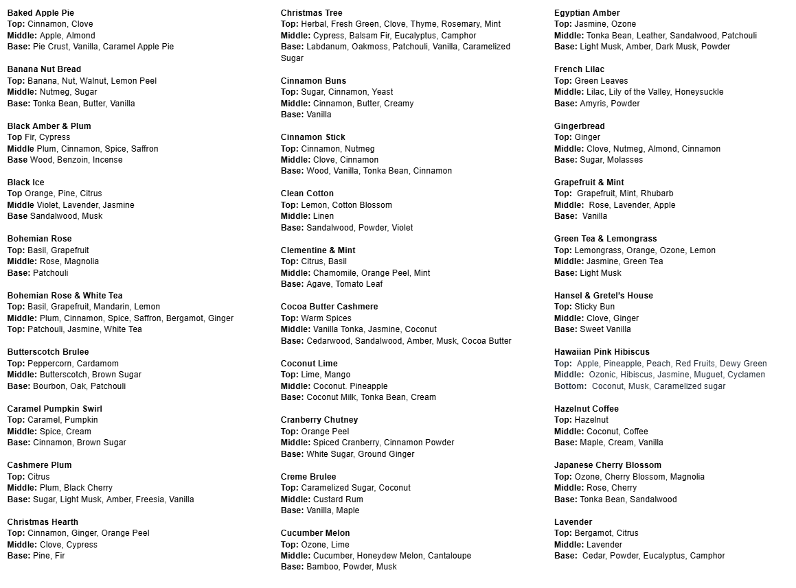 Our complete list of updated scent notes can be found here: https://rosecreekcandleco.com/blogs/news/scent-notes-for-our-fragrances