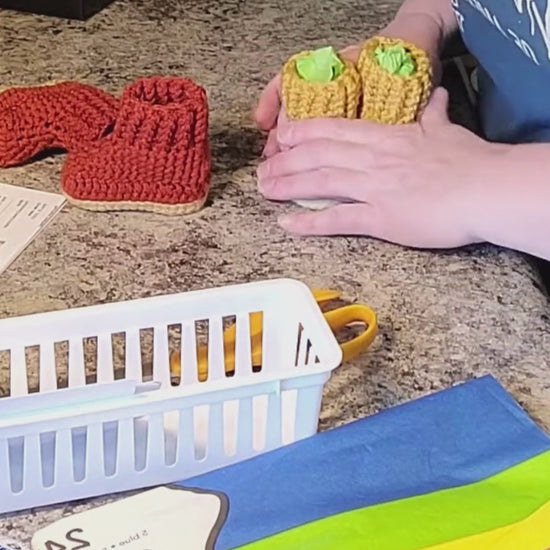 When ordering, please specify color preferences and any details you'd like me to know. You can customize every part of the bootie, please contact me at RoseCreekCandle@yahoo.com or 920-629-7452 for with any questions or customizing instructions. Yarn Colors are limited to availability. I use only the softest yarn and it is made of 100% acrylic. My booties are soft and durable and will keep your loved ones toes nice and warm.