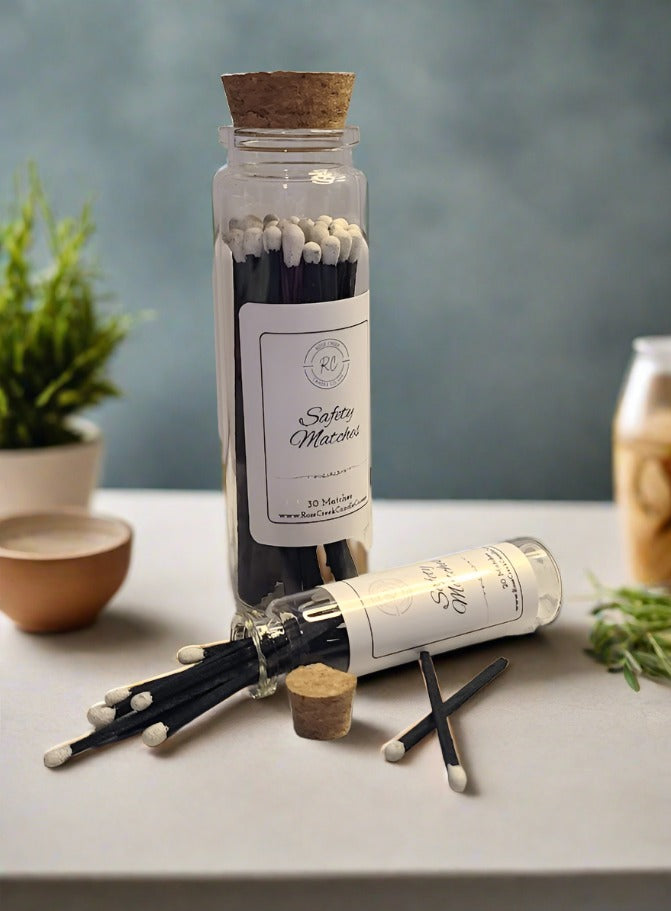 These tuxedo safety matches are perfect for any decor and are a beautiful addition to your candle collection! Each jar has a striker on the bottom of the jar making it easy to ignite your matches. There are two sizes of reusable glass jars to choose from. Our small jar contains with 20 - 2" safety matches and our large jar contains 30 - 4" safety matches. These glass jars, with cork, can be repurposed after use.